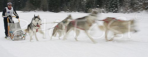 Ratece ,Slovenia - 28.01.2006 : Mushers and dogs were speeding through snowy fields in chase of best possible placement on World Cup and European Cup Sleddog 2006 which was held on 28th of January 2006 in Ratece, Slovenia. Photo by: Primoz Jeroncic/PhotoSI