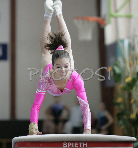: Alenka Dolnicar of Slovenia during exercise on vault at Siska Gym International 2006 competition. Finals of Siska Gym International 2006 competition for women on vault, bars, beam and floor were held in Sport Center Gib in Ljubljana, Slovenia on 5th of November 2006.