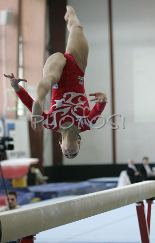 : Second placed Lorena Coza of Italy during exercise on beam at Siska Gym International 2006 competition. Finals of Siska Gym International 2006 competition for women on vault, bars, beam and floor were held in Sport Center Gib in Ljubljana, Slovenia on 5th of November 2006.