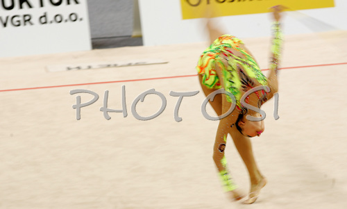 : Aliya Yussupova of Kazakhstan performing during her exercise with rope in Rhythmic gymnastics World Cup 2007. 9th Slovene Challenge Tournament in Rhythmic gymnastics and World Cup in Rhythmic gymnastics was held in Ljubljana, Slovenia on 26th of August 2007.