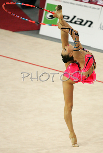 Ljubljana ,Slovenia - 26.08.2007 : Aliya Yussupova of Kazakhstan performing during her exercise with hoop in Rhythmic gymnastics World Cup 2007. 9th Slovene Challenge Tournament in Rhythmic gymnastics and World Cup in Rhythmic gymnastics was held in Ljubljana, Slovenia on 26th of August 2007. Photo by: Primoz Jeroncic/PhotoSI