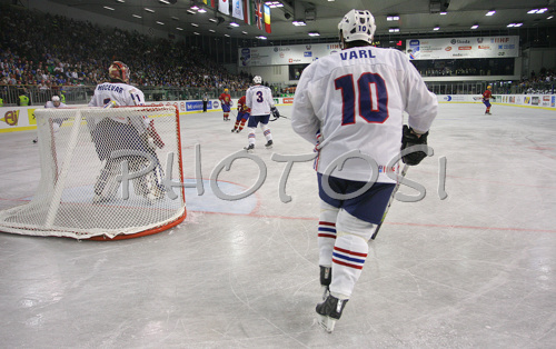 Ljubljana ,Slovenia - 15.04.2007 : Dejan Varl (no.10) of Slovenia organizing attack during second third of match of IIHF Division 1 World championships between Slovenia and Romania. Match was won by Slovenia who defeated Romania with 10:1. Match was played in Tivoli Arena in Ljubljana, Slovenia on 15th of April 2007. Photo by: Primoz Jeroncic/PhotoSI