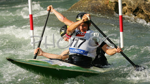 : Team Visnar-Jarc of Slovenia during super finals of C-2 for men International Kayak and Canoe race in Tacen, Slovenia. Race in Tacen, Slovenia was held on 3rd of June 2007 and was also last of three qualification races for Slovene Whitewater National World cup team for season 2007.