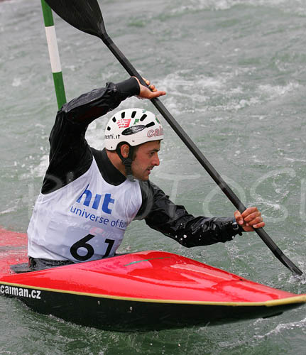 : Daniele Molmenti of Italy paddling during first run of second International kayak and canoe slalom race Tacen 2006 in Tacen, Slovenia. Races of International kayak and canoe slalom Tacen 2006 also counted as third and fourth qualification race for Slovene whitewater kayak and canoe World cup team.