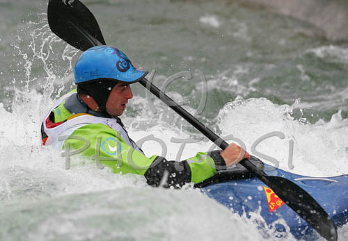 : Igor Mlekuz of Slovenia competing during first International kayak rodeo race Slofreestyle 2006 which was held in Tacen, Slovenia on 3. June 2006.