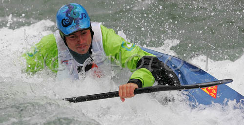 : Igor Mlekuz of Slovenia competing during first International kayak rodeo race Slofreestyle 2006 which was held in Tacen, Slovenia on 3. June 2006.