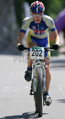 : Blaz Znidarsic of KD Uni Team Ljubljana riding during Slovene Women, Junior and Amaters National Championships in Cross country mountain biking. XC MTB National Championship was held in period of extreme heat where temperatures reached up to +35c, in Kamnik, Slovenia on 22nd of July 2007.