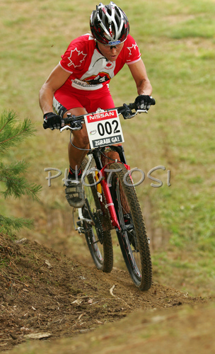 : Second placed Marie-Helene Premont of Canada riding in last race of Women cross country (XCO) Nissan UCI Mountain Bike World Cup. Final race of MTB World Cup was held in Maribor, Slovenia, on 15th of September 2007.