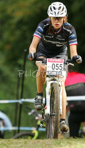 : Julie Krasniak of France riding in last race of Women cross country (XCO) Nissan UCI Mountain Bike World Cup. Final race of MTB World Cup was held in Maribor, Slovenia, on 15th of September 2007.