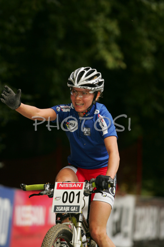 Maribor ,Slovenia - 15.09.2007 : Third placed Irin Kalentieva of Russia celebrating her third place in last race of Women cross country (XCO) Nissan UCI Mountain Bike World Cup. Final race of MTB World Cup was held in Maribor, Slovenia, on 15th of September 2007. Photo by: Primoz Jeroncic/PhotoSI