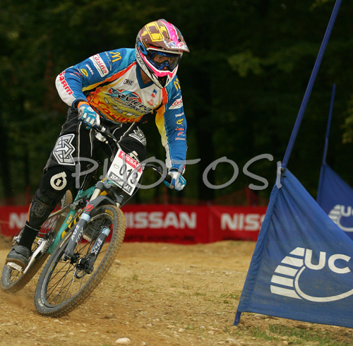 : Karim Amour of France riding in last race of Men Four cross (4X) Nissan UCI Mountain Bike World Cup. Final race of MTB World Cup was held in Maribor, Slovenia, on 15th of September 2007.