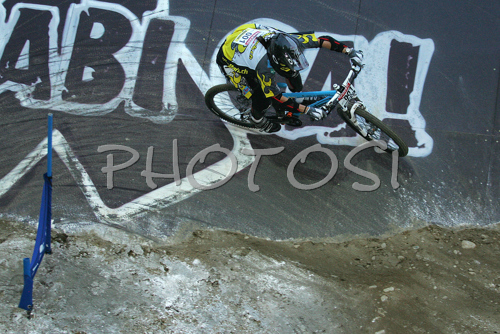 : Anneke Beerten of Netherland riding in last race of Men Four cross (4X) Nissan UCI Mountain Bike World Cup. Final race of MTB World Cup was held in Maribor, Slovenia, on 15th of September 2007.
