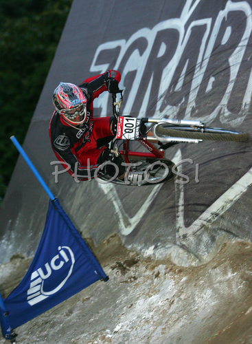 Maribor ,Slovenia - 15.09.2007 : Romain Saladini of France riding in last race of Men Four cross (4X) Nissan UCI Mountain Bike World Cup. Final race of MTB World Cup was held in Maribor, Slovenia, on 15th of September 2007. Photo by: Primoz Jeroncic/PhotoSI