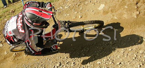 Maribor ,Slovenia - 16.09.2007 : Esteban Deronzier of France riding in last race of Men Downhill Nissan UCI Mountain Bike World Cup. Final race of MTB World Cup was held in Maribor, Slovenia, on 16th of September 2007. Photo by: Primoz Jeroncic/PhotoSI