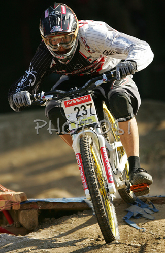 : Florent Wolter of France riding in last race of Men Downhill Nissan UCI Mountain Bike World Cup. Final race of MTB World Cup was held in Maribor, Slovenia, on 16th of September 2007.