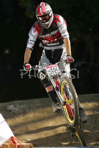Maribor ,Slovenia - 16.09.2007 : Esteban Deronzier of France riding in last race of Men Downhill Nissan UCI Mountain Bike World Cup. Final race of MTB World Cup was held in Maribor, Slovenia, on 16th of September 2007. Photo by: Primoz Jeroncic/PhotoSI