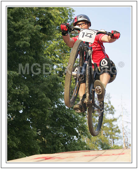 : MTB cyclist during WD40 Guerrilla Bikes Night in Skofja Loka. Cyclists had to finish short track with artificial obstacles and jumps when competing against clock and opponent to qualify for next round.