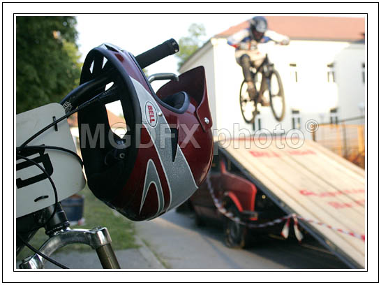 Skofja Loka ,Slovenia - 21.05.2005 : MTB cyclist during WD40 Guerrilla Bikes Night in Skofja Loka. Cyclists had to finish short track with artificial obstacles and jumps when competing against clock and opponent to qualify for next round. Photo by: Primoz Jeroncic/PhotoSI