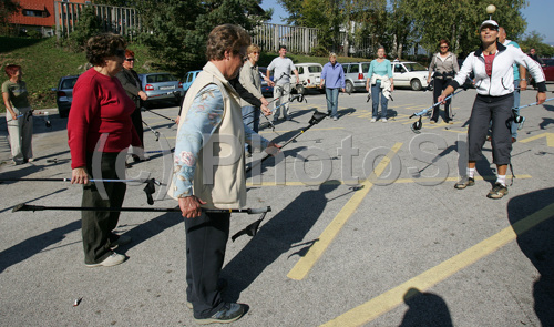 : Nordic walking presentation was held in Kranj, Slovenia, during action which was run in several Slovenian cities. Dr. Darja Azman presented benefits of nordic walking to people who attended almost 2 hours presentation and try out of nordic walking equipment in Kranj, Slovenia.