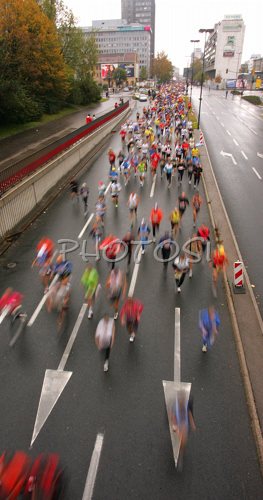 : Athletes running in 12th Ljubljana Marathon. 12th Ljubljana Marathon was held in Ljubljana, Slovenia, on 28th of October 2007. Marathon was held in difficult cold and rainy weather, so already hard track was even harder for more then 8000 runners who were competing in this years marathon and half marathon.