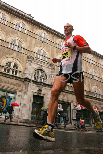 : Athletes running in 12th Ljubljana Marathon. 12th Ljubljana Marathon was held in Ljubljana, Slovenia, on 28th of October 2007. Marathon was held in difficult cold and rainy weather, so already hard track was even harder for more then 8000 runners who were competing in this years marathon and half marathon.