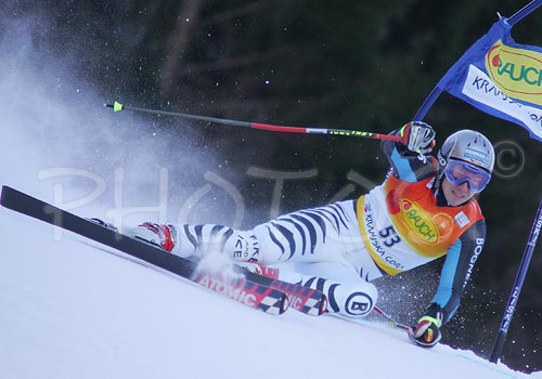 : Felix Neureuther of Germany skiing during FIS World Cup race in Kranjska Gora, Slovenia. Race was won by Benjamin Raich of Austria, Massimilian Blardone of Italy placed second, while Thomas Grandi of Canada finished third.
