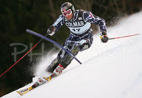 : Aksel Lund Svindal of Norway skiing during FIS World Cup Slalom race in Kranjska Gora, Slovenia. Race was won by Giorgio Rocca of Italy, Thomas Grandi of Canada placed second, while Ted Ligety of USA finished third. Svindal finished 18th.