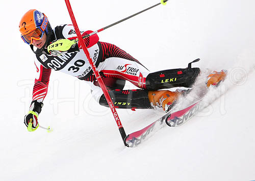 : Reinfried Herbst of Austria skiing during FIS World Cup Slalom race in Kranjska Gora, Slovenia. Race was won by Giorgio Rocca of Italy, Thomas Grandi of Canada placed second, while Ted Ligety of USA finished third. Herbst finished 25th.