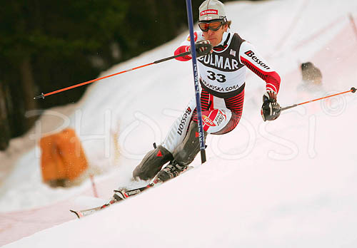 : Kilian Albrecht of Austria skiing during FIS World Cup Slalom race in Kranjska Gora, Slovenia. Race was won by Giorgio Rocca of Italy, Thomas Grandi of Canada placed second, while Ted Ligety of USA finished third. Albrecht didnt qualify for second run.