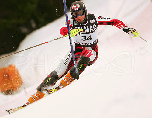 : Martin Marinac of Austria skiing during FIS World Cup Slalom race in Kranjska Gora, Slovenia. Race was won by Giorgio Rocca of Italy, Thomas Grandi of Canada placed second, while Ted Ligety of USA finished third. Marinac didnt qualify for second run.