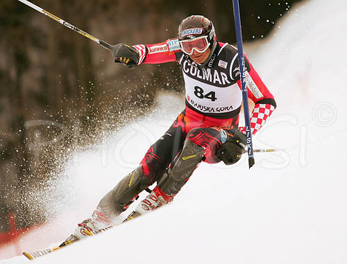 : Natko Zrncic-Dim of Croatia skiing during FIS World Cup Slalom race in Kranjska Gora, Slovenia. Race was won by Giorgio Rocca of Italy, Thomas Grandi of Canada placed second, while Ted Ligety of USA finished third. Zrncic didnt qualify for second run.