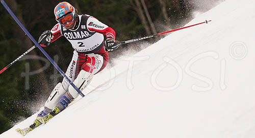 Kranjska Gora ,Slovenia - 22.12.2005 : Rainer Schoenfelder of Austria skiing during FIS World Cup Slalom race in Kranjska Gora, Slovenia. Race was won by Giorgio Rocca of Italy, Thomas Grandi of Canada placed second, while Ted Ligety of USA finished third. Schoenfelder finished 4th. Photo by: Primoz Jeroncic/PhotoSI