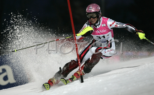 Zagreb ,Croatia - 04.01.2007 : Sandrine Aubert of France skiing in first run of Women Alpine skiing slalom FIS World Cup in Zagreb, Croatia. Snow queen trophy in Zagreb, Croatia was held in Sljeme, Croatia on 4th of January 2007. Photo by: Primoz Jeroncic/PhotoSI
