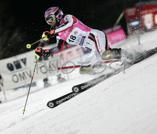 Zagreb ,Croatia - 04.01.2007 : Florine De Leymarie of France skiing in second run of Women Alpine skiing slalom FIS World Cup in Zagreb, Croatia. Snow queen trophy in Zagreb, Croatia was held in Sljeme, Croatia on 4th of January 2007. Photo by: Primoz Jeroncic/PhotoSI