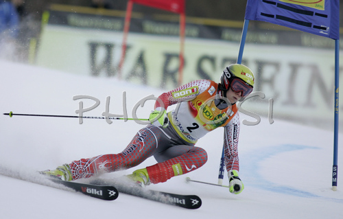 : Winner Nicole Hosp of Austria skiing in first run of Women Alpine skiing giant slalom FIS World Cup in Kranjska Gora, Slovenia. Golden Fox trophy was held in on 6th of January 2007 in in Kranjska Gora, Slovenia, as replacement for Maribor, Slovenia, where organizers could not prepare track due high temperatures.