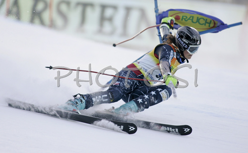 : Caitlin Ciccone of USA having difficulties in first run of Women Alpine skiing giant slalom FIS World Cup in Kranjska Gora, Slovenia. Golden Fox trophy was held in on 6th of January 2007 in in Kranjska Gora, Slovenia, as replacement for Maribor, Slovenia, where organizers could not prepare track due high temperatures.
