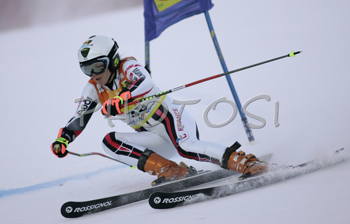 : Marion Bertrand of France skiing in second run of Women Alpine skiing giant slalom FIS World Cup in Kranjska Gora, Slovenia. Golden Fox trophy was held in on 6th of January 2007 in in Kranjska Gora, Slovenia, as replacement for Maribor, Slovenia, where organizers couldnt prepare track due high temperatures.