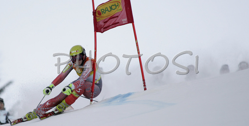 : Winner Nicole Hosp of Austria skiing in second run of Women Alpine skiing giant slalom FIS World Cup in Kranjska Gora, Slovenia. Golden Fox trophy was held in on 6th of January 2007 in in Kranjska Gora, Slovenia, as replacement for Maribor, Slovenia, where organizers couldnt prepare track due high temperatures.