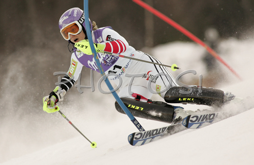 : Michaela Kirchgasser of Austria skiing in second run of Women Alpine skiing slalom FIS World Cup in Kranjska Gora, Slovenia. Golden Fox trophy was held in on 7th of January 2007 in in Kranjska Gora, Slovenia, as replacement for Maribor, Slovenia, where organizers couldnt prepare track due high temperatures.