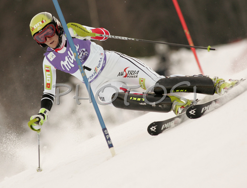 Kranjska Gora ,Slovenia - 07.01.2007 : Nicole Hosp of Austria skiing in second run of Women Alpine skiing slalom FIS World Cup in Kranjska Gora, Slovenia. Golden Fox trophy was held in on 7th of January 2007 in in Kranjska Gora, Slovenia, as replacement for Maribor, Slovenia, where organizers couldnt prepare track due high temperatures. Photo by: Primoz Jeroncic/PhotoSI