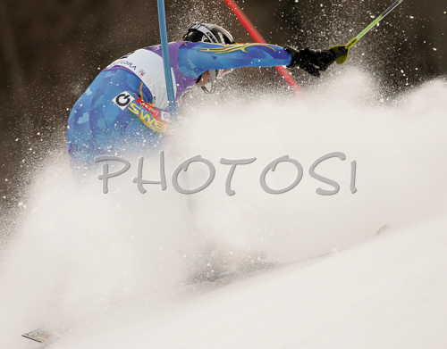 : Anja Paerson of Sweden having problems and falling in second run of Women Alpine skiing slalom FIS World Cup in Kranjska Gora, Slovenia. Golden Fox trophy was held in on 7th of January 2007 in in Kranjska Gora, Slovenia, as replacement for Maribor, Slovenia, where organizers couldnt prepare track due high temperatures.