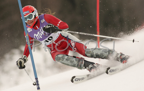 Kranjska Gora ,Slovenia - 07.01.2007 : Second placed Sarka Zahrobska of Czech skiing in second run of Women Alpine skiing slalom FIS World Cup in Kranjska Gora, Slovenia. Golden Fox trophy was held in on 7th of January 2007 in in Kranjska Gora, Slovenia, as replacement for Maribor, Slovenia, where organizers couldnt prepare track due high temperatures. Photo by: Primoz Jeroncic/PhotoSI