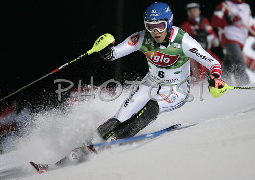 Schladming ,Austria - 30.01.2007 : Winner Benjamin Raich of Austria skiing in first run of Men Alpine skiing slalom FIS World Cup in Schladming, Austria. Men slalom FIS Alpine skiing World Cup was held on 30th of January 2007 in Schladming, Austria. Photo by: Primoz Jeroncic/PhotoSI