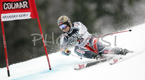 : Truls Ove Karlsen of Norway skiing in first run of Men Alpine skiing giant slalom FIS World Cup in Kranjska Gora, Slovenia. Men giant slalom FIS Alpine skiing World Cup was held on 3rd of March 2007 in Kranjska Gora, Slovenia.