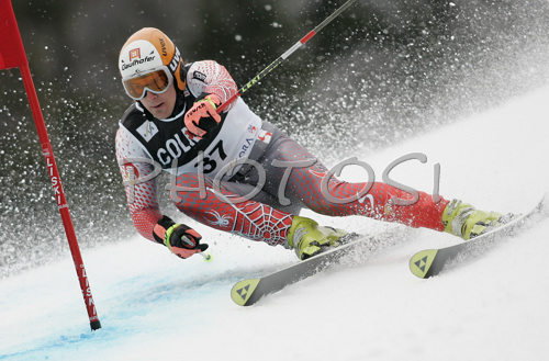 : Matthias Lanzinger of Austria skiing in first run of Men Alpine skiing giant slalom FIS World Cup in Kranjska Gora, Slovenia. Men giant slalom FIS Alpine skiing World Cup was held on 3rd of March 2007 in Kranjska Gora, Slovenia.
