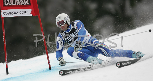: Mirko Deflorian of Italy skiing in first run of Men Alpine skiing giant slalom FIS World Cup in Kranjska Gora, Slovenia. Men giant slalom FIS Alpine skiing World Cup was held on 3rd of March 2007 in Kranjska Gora, Slovenia.
