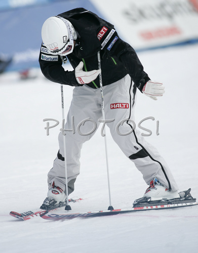 : Marcus Sandell of Finland inspecting course of second run of Men Alpine skiing giant slalom FIS World Cup in Kranjska Gora, Slovenia. Men giant slalom FIS Alpine skiing World Cup was held on 3rd of March 2007 in Kranjska Gora, Slovenia.