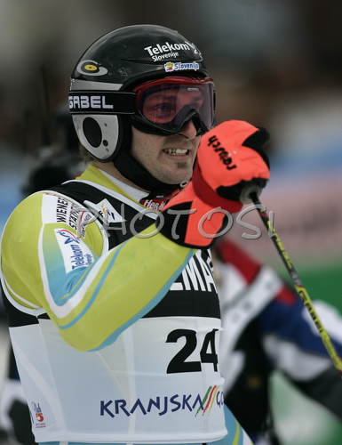 : Ales Gorza of Slovenia after finishing second run of Men Alpine skiing giant slalom FIS World Cup in Kranjska Gora, Slovenia. Men giant slalom FIS Alpine skiing World Cup was held on 3rd of March 2007 in Kranjska Gora, Slovenia.