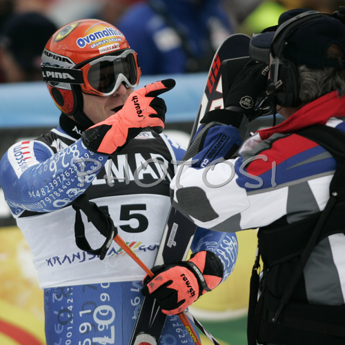 : Didier Cuche of Switzerland after finishing second run of Men Alpine skiing giant slalom FIS World Cup in Kranjska Gora, Slovenia. Men giant slalom FIS Alpine skiing World Cup was held on 3rd of March 2007 in Kranjska Gora, Slovenia.