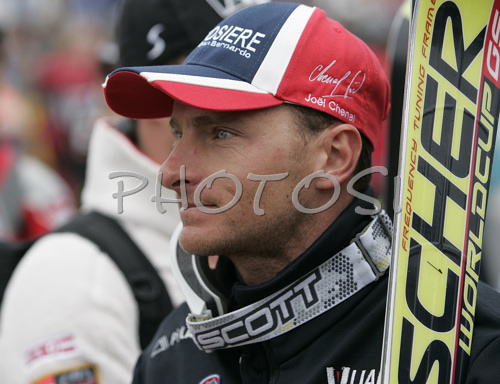 : Joel Chenal of France after finishing second run of Men giant slalom FIS Alpine skiing World Cup race in Kranjska Gora, Slovenia. Men giant slalom FIS Alpine skiing World Cup race was held in Kranjska Gora, Slovenia on 3rd of March 2007.